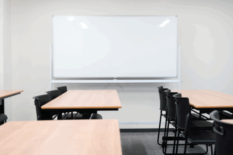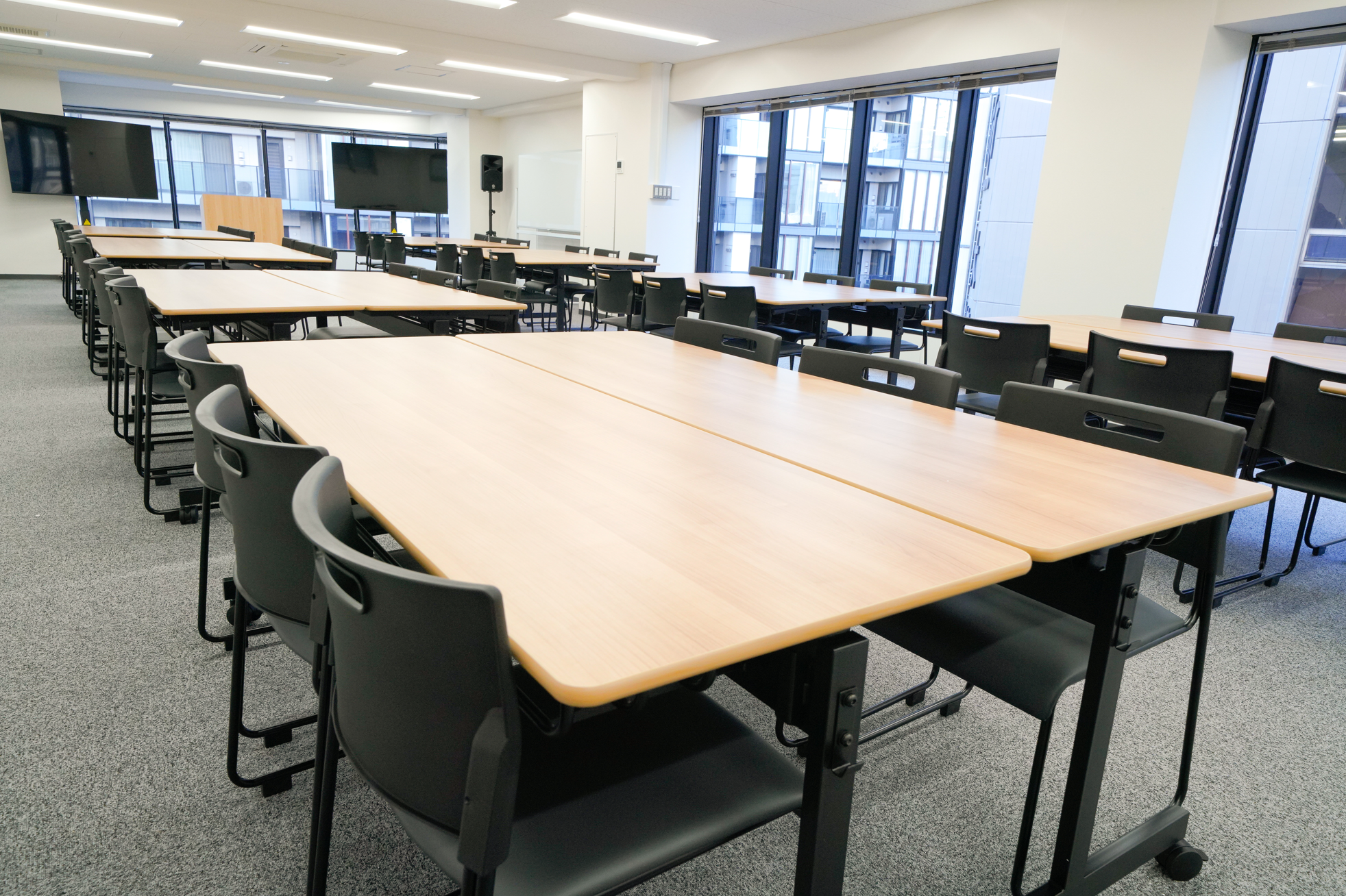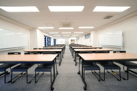 長机16台、椅子48脚、モニター2台、ホワイトボード2台、講演台1台、マイク2台